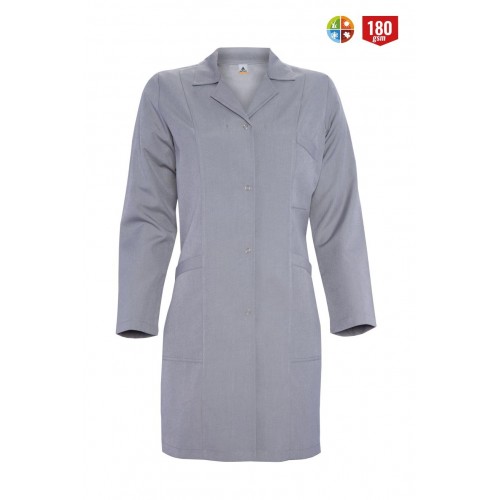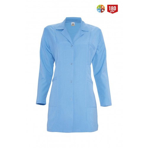 Şık ve pratik, önden çıtçıtlı bu bayan iş önlüğü tüm gün maksimum konfor sunar. Bir göğüs cebi, iki yan cepleri ve rahat kesimiyle rakipsizdir. %75 Polyester %25 Viscon / 180 gsm kumaştan üretilmiştir.