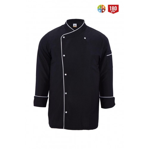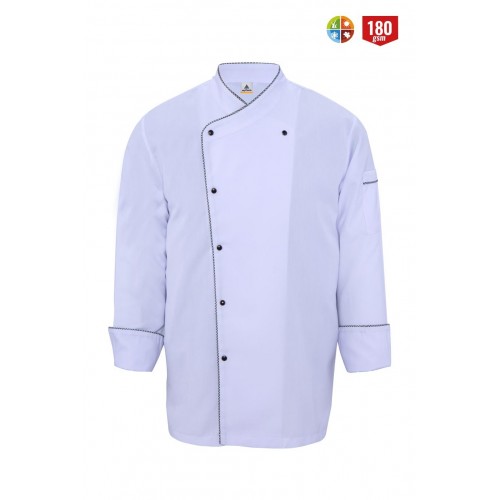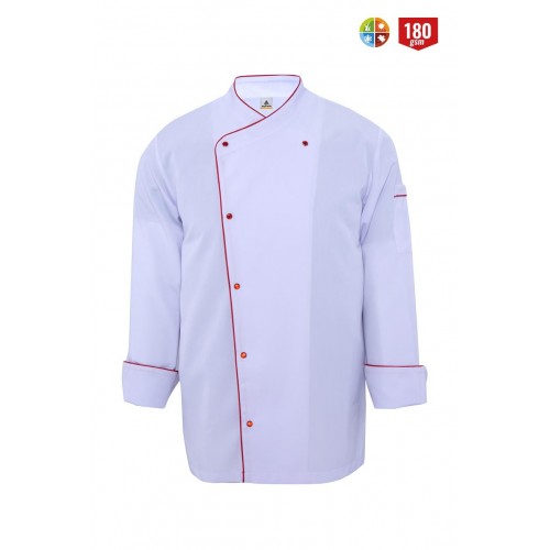 Şef ceketleri sağlam, dayanıklı kaliteli kumaşlardan üretilmiştir. Defalarca yıkanabilmeyi garanti eder. Modern mutfaklar için idealdir. Tüm gün hareket özgürlüğüve modern bir görünüm sunar. Çıtçıtlı yapısıyla oldukça rahat bir kullanım sağlar. %75 Polyester %25 Viscon / 180 gsm kumaştan üretilmiştir.